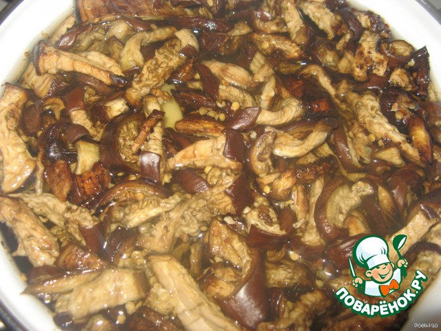 Через 5 минут добавляем в кастрюльку баклажаны.