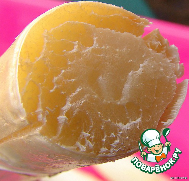Затем обрезают примерно 2 см от конца ствола. Очистки и обрезки не выбрасывают - это может служить основой для супа.