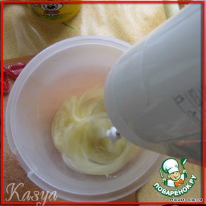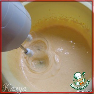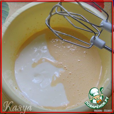 Вот как-то так, до кремового цвета. В сметану добавляем 1/4 ложку соды. Сметана ее погасит, увеличится в объеме, рассчитывайте емкость.