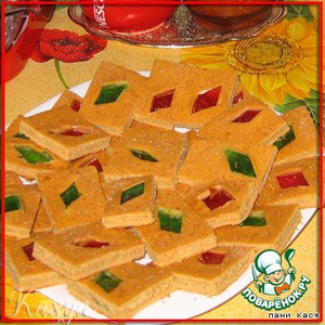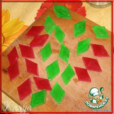 - Мармелад (2-3 цвета, ромбики, желейные, обсыпанные сахаром)