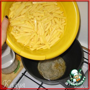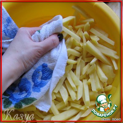 Картошку нарезаем брусочками, споласкиваем, чтобы избавиться от излишков крахмала, высушиваем