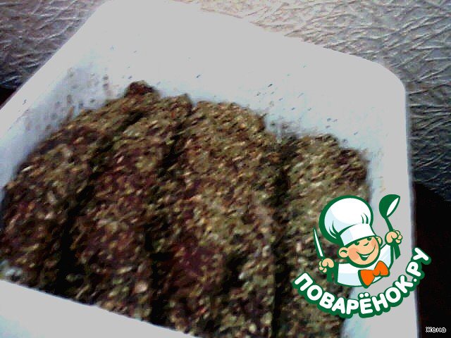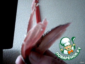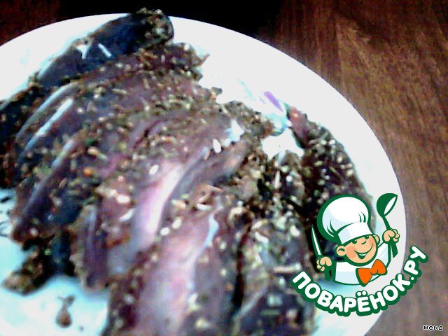 А дальше все просто, очищаем от соли которая прилипла, обваливаем в любимых специях и вывешиваем в пластиковой авоське на кухне - недели на две.