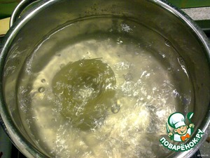 В кастрюльку с кипящей и подсоленной водой опустить гнезда (у меня Макфа, тонкая и длинная вермишель), сварить по инструкции (у меня это 3 мин.).