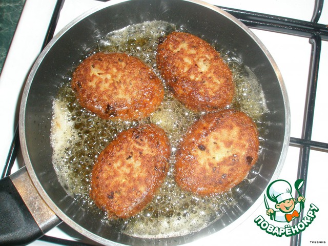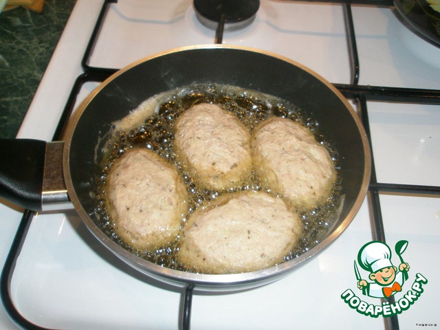 Мокрыми руками делать котлетки и жарить на растительном масле (у меня было оливковое).