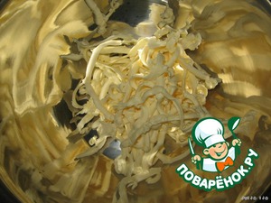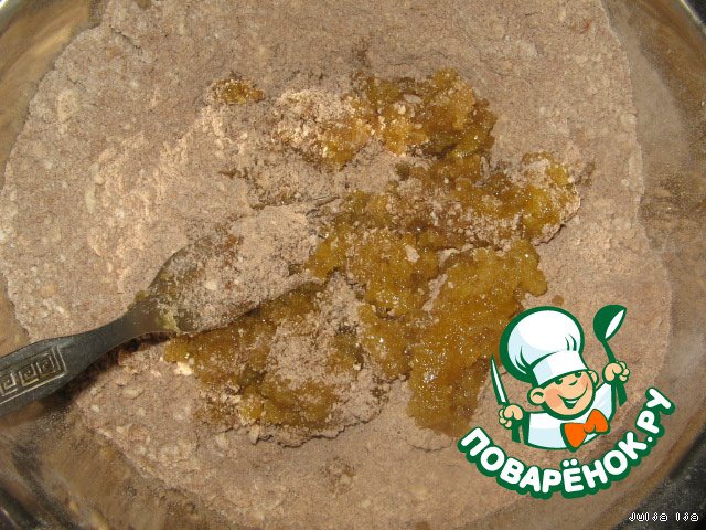 • Муку с разрыхлителем добавить к маслу и растереть всё руками в крошку.