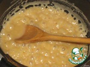 Должна получится мягкая карамельная масса, тесто, очень мягкое, по мере остывания оно будет твердеть. Поэтому с мукой не переборщить.