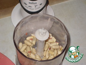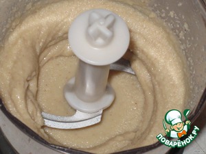 Открыть крышку, добавить ложку-две растительного масла и опять начать молоть, пока масса не станет однородной и тягучей, вобщем пастой.