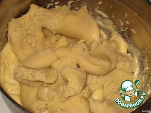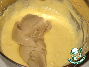 Затем добавить карамельное тесто и миксером сделать однородную массу.