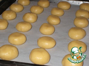Из теста сформировать шарики и выложить на противень, на расстоянии 2,5-3 см друг от друга.
