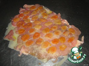 Смазываем яйцом и укладываем сверху курагу (если курaга жёсткая, то зашпариваем кипятком)