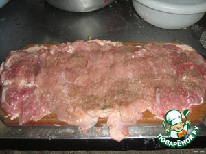 Вдоль спинки прорезаем кожу и отделяем мясо с кожей от костей.