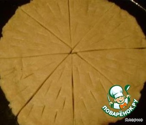 Каждый круг разрезаем на 8 частей и ножом надрезаем на печениках вот такой узор..