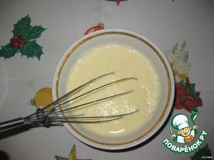 Яйцо немного взбить с молоком, добавить половину (150-200 гр) сыра, выдавить в смесь чеснокодавкой чеснок.