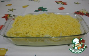 Высыпать сверху остаток (150-200 гр) твёрдого сыра. -