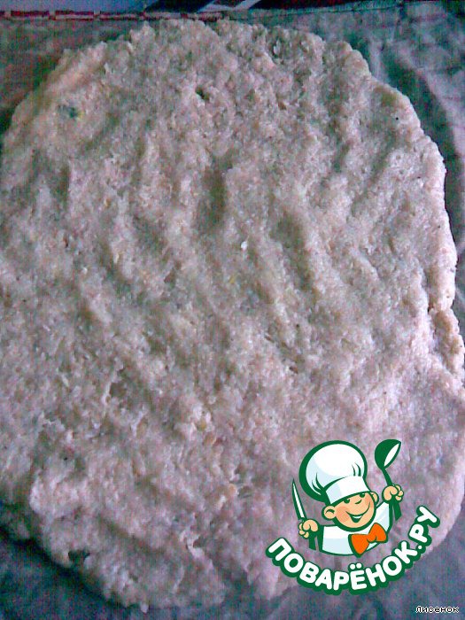 На чистую,влажную салфетку выложить рыбный фарш и разровнять.