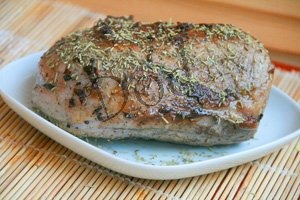Разогреть масло, жарить мясо со всех сторон 12-15 мин. Посыпать сушеным розмарином.