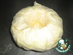 У кочана вырезаем кочерыжку и бланшируем в кипятке.