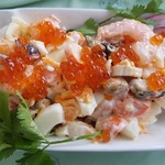 Мелко порубить яйцо. Вилкой размять мясо криля.