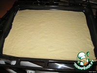 Через указанное время, раскатываем тонкую пышку, кладем ее на смазанный растительным маслом противень. |