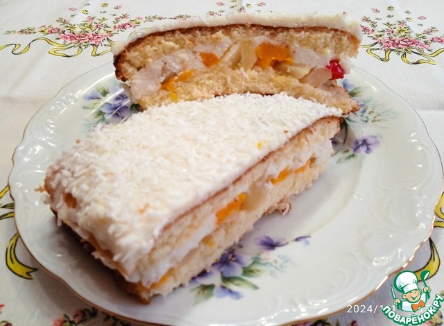 Ингредиенты для «Бисквитный торт с ананасами»: