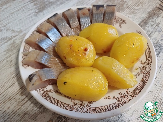 Рецепт «Картофель, запеченный в микроволновке, с сельдью»: