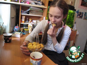 Из теста скатывать шарики, примерно с грецкий орех и выкладывать на расстоянии примерно 2 см друг от друга.