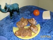 Вот и получилось 2 блюда--голени и отбивные из 2 окорочков. Быстро, т. к. всe вместе жарится и вкусно.