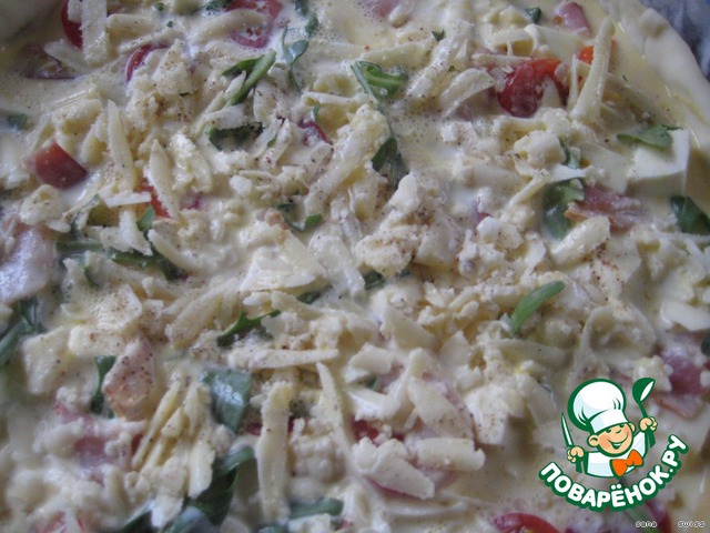 Рецепт «Киш с копченой грудинкой, сыром и рукколой»:
