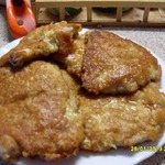 В идеале, куриное филе окунают в кляр, затем в мелко потертый сыр, потом опять в кляр, сыр, кляр... эту процедуру делают три раза.
