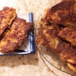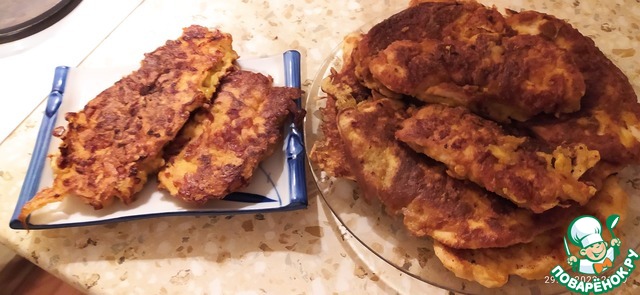 Переложить на сковородку и сверху еще добавить кляр... Обжарить с двух сторон до золотистой корочки. Готовятся очень быстро.