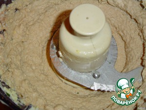 Для начинки разотрите горбушу, добавьте немного красного перца, немного тертого мускатного ореха, вареные яйца и соус хрена с уксусом. Взбейте до однородной массы.