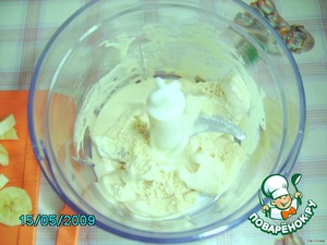 Начинаем творить! В блендер кладём мороженное( лучше немного подтаявшее)...
