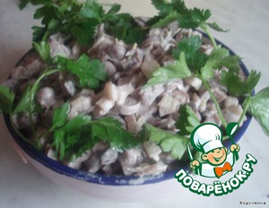 Лук порезать МЕЛКО и замариновать, чтоб ушла горечь. Только обязательно мелко. У меня лук порезан средне и это мой прокол в этом. -