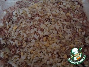 Отварить яйца. Мелко порезать яйца и репчатый лук.