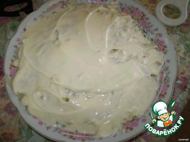И хорошенько промазываем майонезом, обязательно нежирным!!!