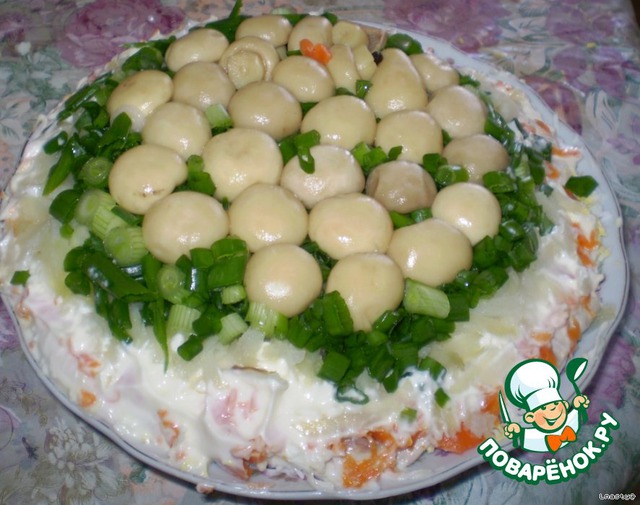 Накрываем салат 2 тарелкой (такой как и 1) и переворачиваем