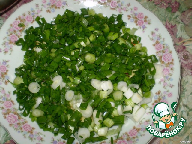 Хорошо и щедро засыпать зеленым луком, не очень мелко нарезанным
