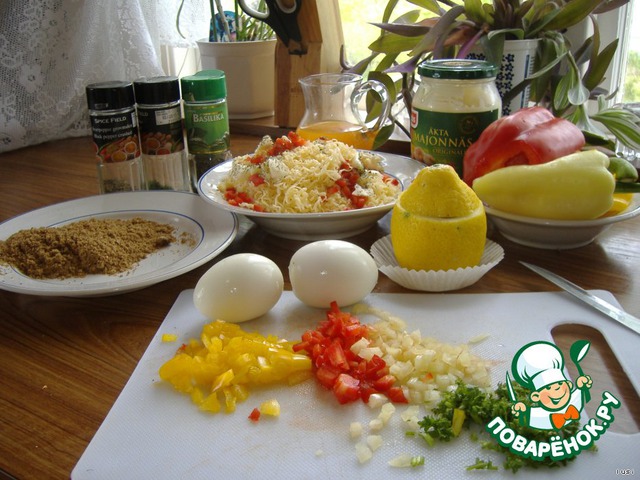 очень мелко нарезать свежий перец (красный, желтый, зеленый).