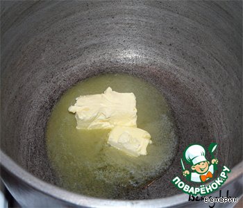 В казане (или в кастрюле с толстым дном) растопить сливочное масло.