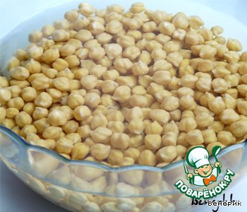 Для начала замочить на ночь нут в холодной воде (воды должно быть в два раза больше), и на следующий день отварить его в солёной воде.