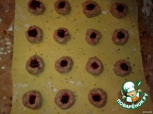 Сверху в фарш вдавливаем 1/4 часть ягоды. -