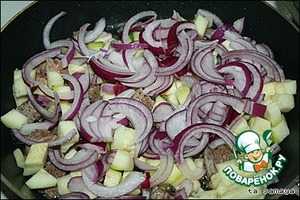 Очередное придуманное блюдо. Оставалась у меня говядины немножко и цуккини, ну, и еще всякое в холодильнике подзавалялось :) В результате приготовилось следующее.