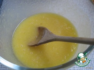 Масло, мед и сахар положить в миску и поставить в СВЧ печь на 1 минуту. Я ставила мощность 600 Wt.