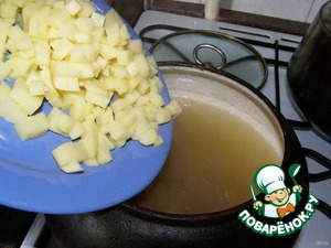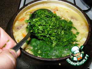 За 20-15 минут до конца варки бросаем промытое до чистой воды пшено - 1 меру