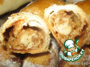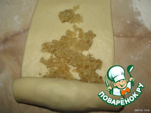 Закручиваем в рулетик. И выкладываем на смазанный сливочным маслом противень.