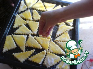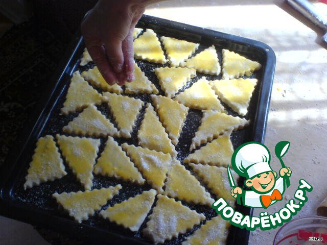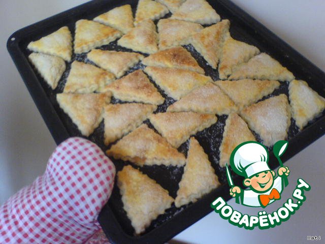 Это мамин рецепт, наши любимые в детстве печенья... Мама делала в виде ромбиков, а мне почему-то по душе треугольники... так что, кто как пожелает. Вот решила в конкурсе "Silver Line на радость детям" поучаствовать ещe раз, авось повезет :-[
