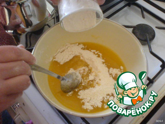 Дальше - муку 1 стак. и хорошенько перемешайте