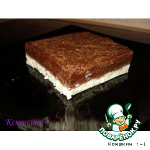 Творог взбить с сахаром, яйцом и сметаной. Выложить получившуюся массу на шоколадную подложку и вернуть в духовку на 15 минут. Дать остыть в духовке. Затем поставить в холодильник на 3 часа. Перед подачей нарезать квадратами.