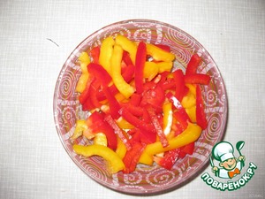В этой же сковородке в течение 3 минут обжарить лук и перец.