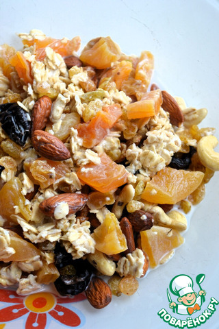Ещё в "салат" добавила кешью и миндаль ( в ингредиентах есть орехи); молока хватило около 100 мл; мёд не добавляла.